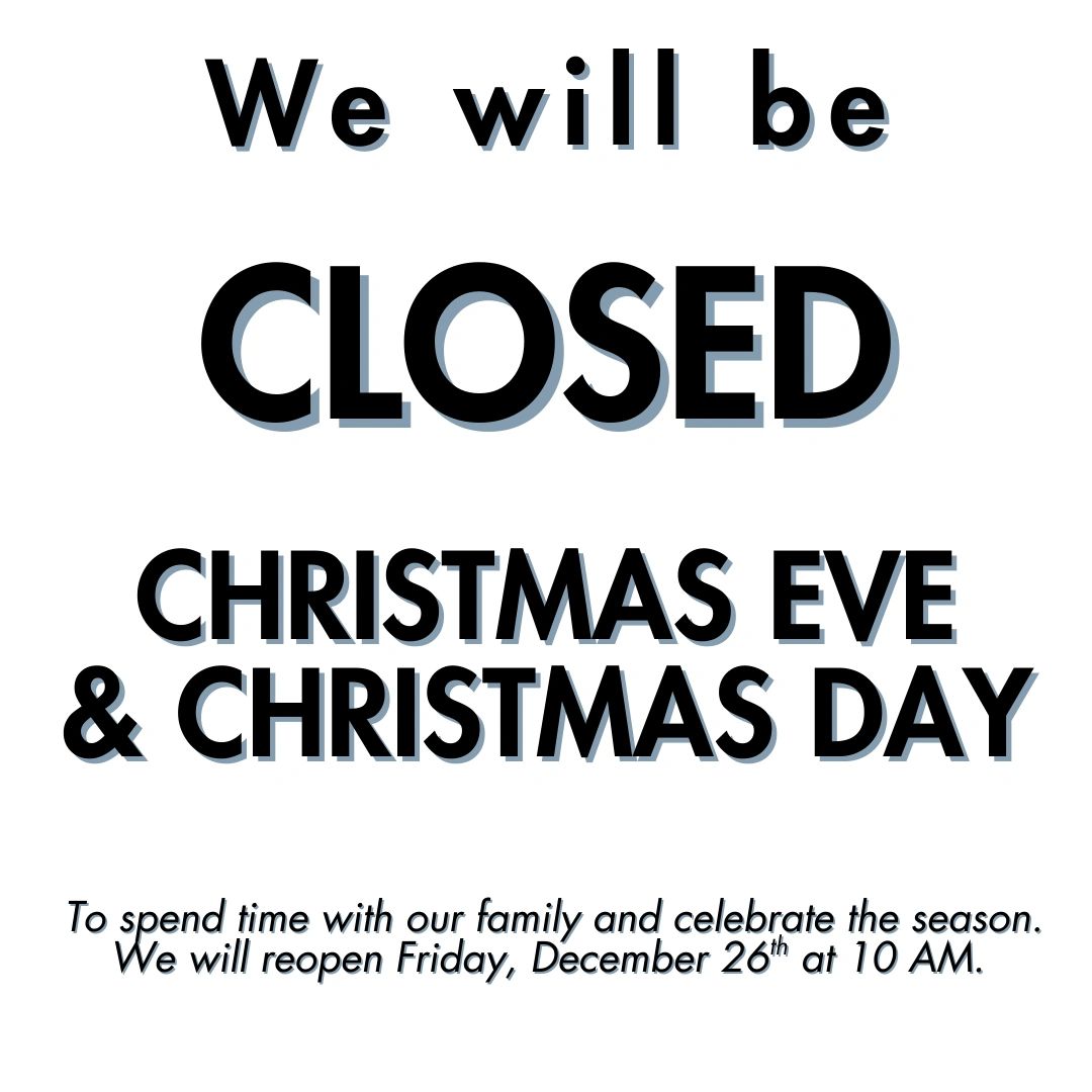 We are open daily excluding Thanksgiving, Christmas Eve, Christmas Day, Easter, Mother's Day, Memorial Day, Father's Day Independence Day, and Labor Day to observe the Holidays with our family.